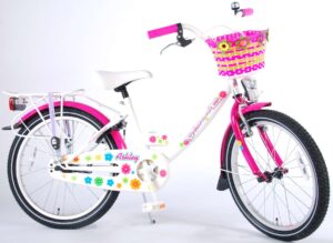 Volare Ashley meisjesfiets 20 inch. De Volare Ashley fietsen zijn geschikt voor alle fleurige dametjes. Zowel het frame van de fiets als het praktische kunststofmandje zijn voorzien van een prachtig bloemetjesdesign en een fietsbel. De fiets beschikt over een handrem en een achteruittraprem. Een top fiets voor een lage prijs! Fiets is 95% afgemonteerd, dus wordt bijna fietsklaar afgeleverd.