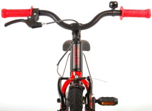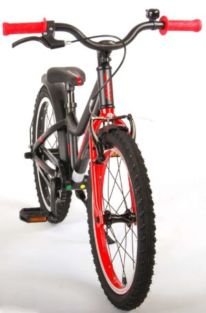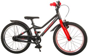 Volare Blaster 18 inch kinderfiets. De stoere Volare Blaster kinderfietsenreeks is van superieure kwaliteit. Het frame van deze fiets is gemaakt van ultra licht aluminium, slechts 6,5 kilo! Ook onderdelen zoals het stuur en het fietsstandaard zijn uit aluminium vervaardigd. Om vaart te kunnen minderen heeft de fiets een veilig Aluminium V-brake systeem met zowel een handrem als terugtraprem. De fiets heeft geen zijwielen, maar een praktisch en sterk aluminium standaard. De handvaten zijn van Kraton, een heerlijk zacht rubber, waardoor deze lekkerder in de hand liggen en extra comfort bieden. De zadelbuis is extra laag met een extra lange zadelpen, waardoor de fiets met uw kind mee kan groeien. De spatborden zijn mooi gevormd en iets langer dan normaal, waardoor zij al het opspattende vuil tijdens het crossen tegenhouden. Daarnaast heeft de fiets een aluminium smart control systeem, dat ervoor zorgt dat het stuur begrensd is (niet in hoogte verstelbaar). De stoere kettingkast is een grote toevoeging voor het krachtige en superstoere design van deze fiets met zijn strakke aluminium frame en rode details. De fiets is voor 85% afgemonteerd. De 18 inch luchtbanden maken dat deze fiets geschikt is voor jongens tussen de 4 en 7 jaar oud met kledingmaat 104-116. Deze Volare Blaster kinderfiets inspireert iedere jongen om zijn wereld te ontdekken!