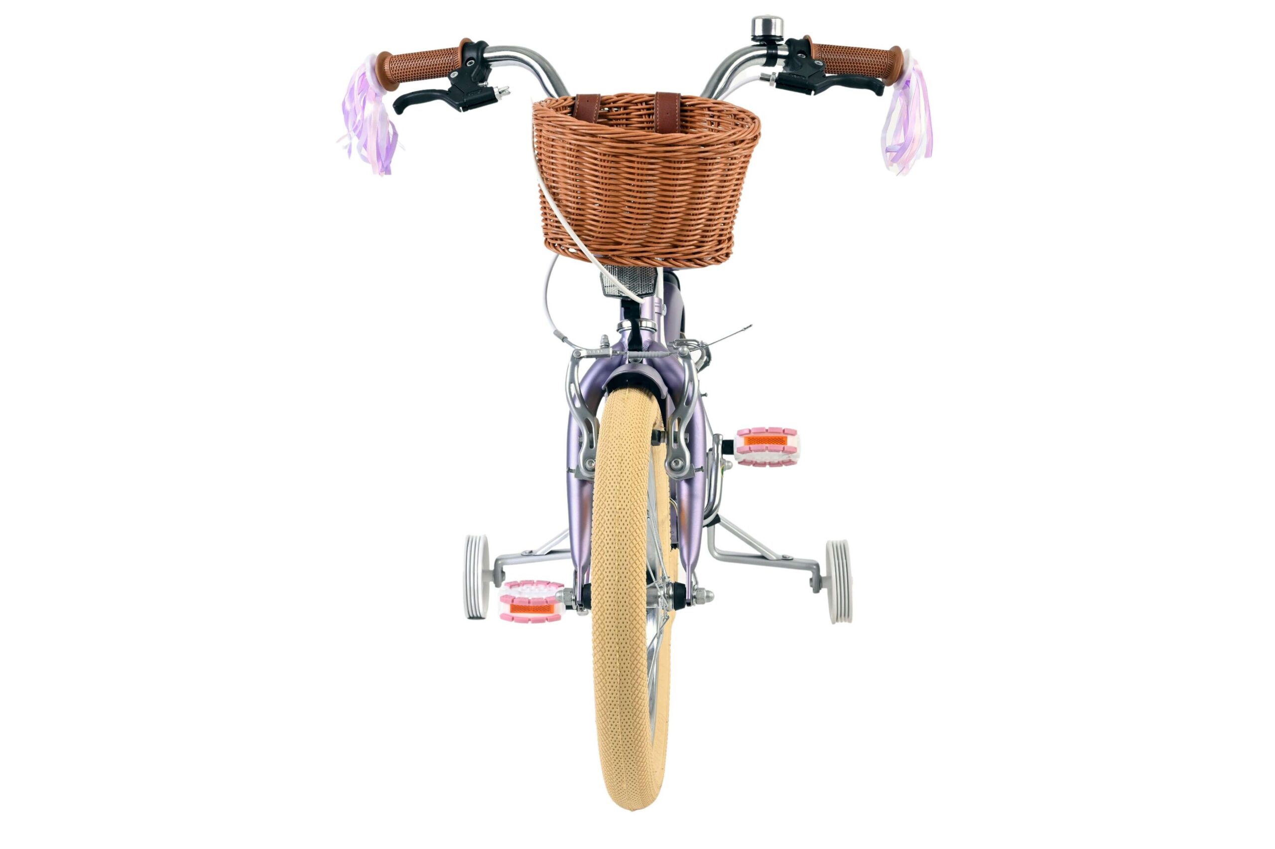 Veiligheid staat voorop! Daarom heeft deze gave fiets geen terugtraprem maar twee handremmen, afneembare zijwieltjes en een gesloten kettingkast. Ook aan het comfort is gedacht. De mooie paarse Volare fiets heeft een comfortabel zacht zadel , een poppenzitje, vrolijke handvatversieringen en een handig rieten mandje. Om zo lang mogelijk van de fiets te kunnen genieten zijn het zadel en stuur in hoogte verstelbaar. Wordt geleverd inclusief al het montagemateriaal dat nodig is om de fiets in elkaar te zetten!
