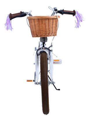 Veiligheid staat voorop! Daarom heeft deze gave fiets geen terugtraprem maar twee handremmen en een gesloten kettingkast. Ook aan het comfort is gedacht. De mooie witte Volare fiets heeft een poppenzitje, een comfortabel zacht zadel een handig rieten mandje en fleurige handvatversiering. Om zo lang mogelijk van de fiets te kunnen genieten zijn het zadel en stuur in hoogte verstelbaar. Wordt geleverd inclusief al het montagemateriaal dat nodig is om de fiets in elkaar te zetten!