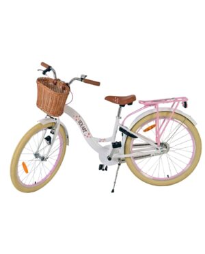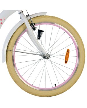 Deze 24 inch meisjesfiets in een zachte roze kleur, versierd met Blossom bloemetjes, is de perfecte fiets voor elke jonge fietser. De fiets is uitgerust met een handige standaard, zodat je hem makkelijk kunt neerzetten zonder dat hij omvalt. Dankzij de verlichting voor en achter ben je altijd goed zichtbaar in het donker of bij schemering. Het praktische mandje voorop biedt voldoende ruimte voor allerlei spullen.