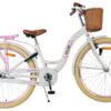 De 26 inch Volare Blossom kinderfiets is de perfecte keuze voor meisjes die op zoek zijn naar een stijlvolle en veilige fiets. Het frame, versierd met vrolijke Blossom bloemen, maakt de fiets niet alleen praktisch, maar ook een echte blikvanger. De fiets is uitgerust met een Nexus 3-versnelling, waarmee je kind moeiteloos schakelt tussen verschillende versnellingen, zodat elke rit soepel verloopt, of het nu bergop of op vlak terrein is. De combinatie van zowel een terugtraprem als een handrem zorgt ervoor dat je kind altijd de volledige controle heeft over de snelheid en veilig kan stoppen.