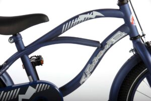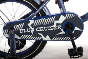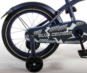 Volare Blue Cruiser 16 inch jongensfiets. De Volare Blue Cruiser heeft een moderne mat blauwe kleur, waarmee elke trendy jongen zich wil laten zien. Het hippe frame, de zijwieltjes en de mooie kleuren maken de fiets tot een gewild item. Natuurlijk gemaakt van de Volare top kwaliteit. Deze fiets is voor 95% afgemonteerd, dus bijna fietsklaar. Wel zo gemakkelijk!
