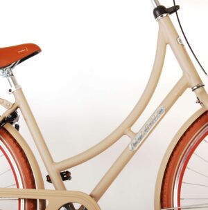 Volare Classic Oma damesfiets 28 inch 48 centimeter. Deze mat zand kleurige Classic Oma fiets is de moderne uitvoering van deze ultieme klassieker! Het sterke Aluminium frame heeft een hippe uitstraling door zijn matte zand kleur. Op de achterdrager met snelbinders kunnen alle spullen mee worden genomen. De handvaten zijn voor extra comfort gemaakt van Kraton, een heerlijk zacht rubber. De fiets is voorzien van zowel een handrem als een terugtraprem. Voor de veiligheid heeft de fiets een deels omsloten kettingkast, jasbeschermers en voor- en achterverlichting. Verder heeft de fiets een fietsbel, een fietsslot met fietssleutel en een stevig standaard. De 28 inch banden en het frame van 48 centimeter hoog maken de fiets geschikt voor dames vanaf 11 jaar oud met een binnenbeenlengte tussen de 83 en 100 centimeter.