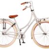 Volare Classic Oma damesfiets 28 inch 48 centimeter. Deze mat zilveren Classic Oma fiets is de moderne uitvoering van deze ultieme klassieker! Het sterke Aluminium frame heeft een hippe uitstraling door zijn pastel blauwe kleur. Op de achterdrager met snelbinders kunnen alle spullen mee worden genomen. De handvaten zijn voor extra comfort gemaakt van Kraton, een heerlijk zacht rubber. De fiets is voorzien van zowel een handrem als een terugtraprem. Voor de veiligheid heeft de fiets een deels omsloten kettingkast, jasbeschermers en voor- en achterverlichting. Verder heeft de fiets een fietsbel, een fietsslot met fietssleutel en een stevig standaard. De 28 inch banden en het frame van 48 centimeter hoog maken de fiets geschikt voor dames vanaf 11 jaar oud met een binnenbeenlengte tussen de 83 en 100 centimeter.