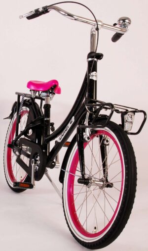 Deze zwart glinsterende Classic Oma fiets is de moderne uitvoering van deze ultieme klassieker! Het sterke Aluminium frame heeft een hippe uitstraling door zijn zwart glinsterende kleur. Op de achterdrager met snelbinders kunnen alle spullen mee worden genomen. De handvaten zijn voor extra comfort gemaakt van Kraton, een heerlijk zacht rubber. De fiets is voorzien van zowel een handrem als een terugtraprem. Voor de veiligheid heeft de fiets een deels omsloten kettingkast, jasbeschermers en voor- en achterverlichting. Verder heeft de fiets een fietsbel, een fietsslot met fietssleutel en een stevig standaard.
