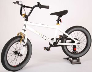 Volare Cool Rider 16 inch jongensfiets 95% afgemonteerd. Voor alle superstoere jongens heeft Volare een fiets gemaakt die qua uiterlijk niet onderdoet voor een echte BMX fiets. Omdat hij van de beste materialen is gemaakt, is hij zeker geschikt om mee rond te crossen! Zo is hij voorzien van stevige wielen met aluminum velgen en stalen spaken, zowel een terugtraprem als een handrem, en een fietsbel. De fiets heeft een hoog stuur. Ga de straat op, rijdt naar het skatepark en leef je uit! Deze fiets is voor 95% afgemonteerd, dus hij is bijna fietsklaar. Wel zo gemakkelijk!