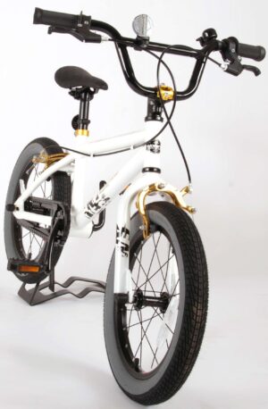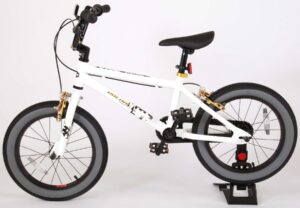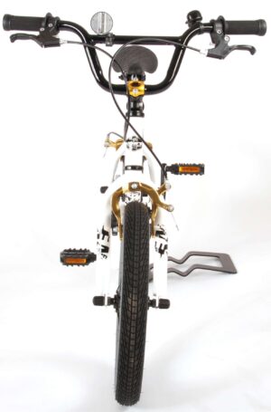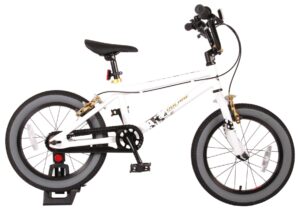 Volare Cool Rider 16 inch jongensfiets 95% afgemonteerd. Voor alle superstoere jongens heeft Volare een fiets gemaakt die qua uiterlijk niet onderdoet voor een echte BMX fiets. Omdat hij van de beste materialen is gemaakt, is hij zeker geschikt om mee rond te crossen! Zo is hij voorzien van stevige wielen met aluminum velgen en stalen spaken en een fietsbel. Deze fiets heeft twee handremmen (geen terugtraprem!) De fiets heeft een hoog stuur. Ga de straat op, rijdt naar het skatepark en leef je uit! Deze fiets is voor 95% afgemonteerd, dus hij is bijna fietsklaar. Wel zo gemakkelijk!