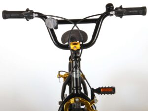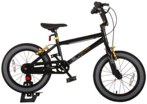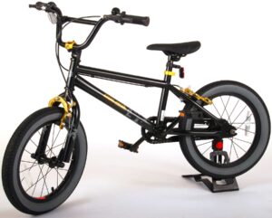 Volare Cool Rider 16 inch jongensfiets 95% afgemonteerd. Voor alle superstoere jongens heeft Volare een fiets gemaakt die qua uiterlijk niet onderdoet voor een echte BMX fiets. Omdat hij van de beste materialen is gemaakt, is hij zeker geschikt om mee rond te crossen! Zo is hij voorzien van stevige wielen met aluminum velgen en stalen spaken en een fietsbel. Deze fiets heeft twee handremmen (geen terugtraprem!) De fiets heeft een hoog stuur. Ga de straat op, rijdt naar het skatepark en leef je uit! Deze fiets is voor 95% afgemonteerd, dus hij is bijna fietsklaar. Wel zo gemakkelijk!