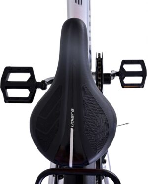 Veiligheid staat voorop! Daarom heeft deze gave fiets geen terugtraprem maar twee handremmen, 6 versnellingen, reflectoren in de wielen en verlichting op batterij voor en achter. Ook aan het comfort is gedacht. De mooie grijze Volare fiets heeft een handige achterdrager om moeiteloos al je spullen mee te nemen, een comfortabel zacht zadel, een standaard zodat je fiets altijd netjes blijft staan en een stevig slot. Om zo lang mogelijk van de fiets te kunnen genieten heeft deze een extra lange zadelpen waardoor de fiets nóg langer met het kind meegroeit. Let op, het stuur is niet in hoogte verstelbaar!