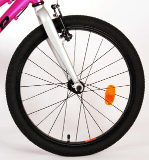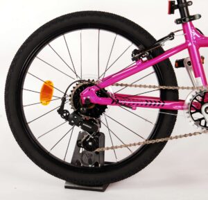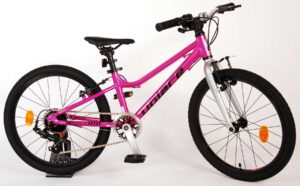 De 20 inch Volare Dynamic is een stoere meidenfiets waar ieder kinderhart sneller van gaat kloppen. Om vaart te kunnen minderen heeft de fiets een veilig Aluminium V-brake systeem met twee handremmen (geen terugtraprem!). De handvaten zijn van Kraton, een heerlijk zacht rubber, waardoor deze lekkerder in de hand liggen en extra comfort bieden. Daarnaast is het frame van deze fiets gemaakt van ultra licht aluminium. De fiets is voor 85% afgemonteerd. De 20 inch luchtbanden maken dat deze fiets geschikt is voor meiden tussen de 6 en 8 jaar oud met kledingmaat 116-122. Op deze coole Volare Dynamic kinderfiets wil iedere meid naar school fietsen! Vroemmmm…