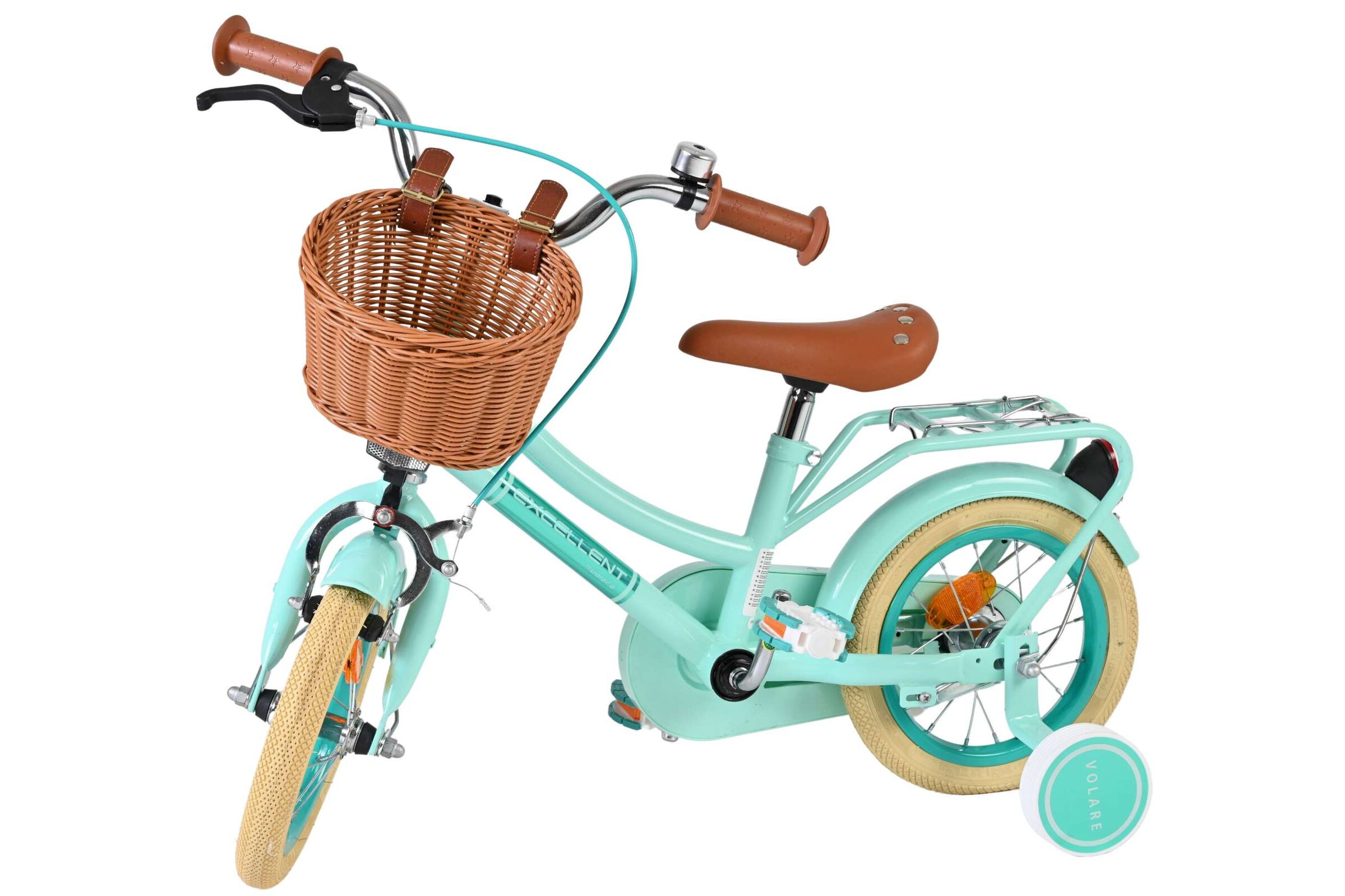 Veiligheid staat voorop! Daarom heeft deze gave fiets een handrem en terugtraprem, afneembare zijwieltjes en een gesloten kettingkast. Daarnaast heeft de fiets reflectoren achter en een leuke bel. Ook aan het comfort is gedacht. De mooie groene Volare fiets heeft een handige achterdrager, een comfortabel zacht zadel en een handig rieten mandje. Om zo lang mogelijk van de fiets te kunnen genieten zijn het zadel en stuur in hoogte verstelbaar. Wordt geleverd inclusief al het montagemateriaal dat nodig is om de fiets in elkaar te zetten!