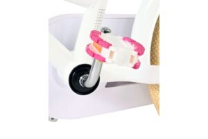 Veiligheid staat voorop! Daarom heeft deze gave fiets een handrem en terugtraprem, afneembare zijwieltjes en een gesloten kettingkast. Daarnaast heeft de fiets reflectoren voor en achter en een leuke bel. Ook aan het comfort is gedacht. De mooie witte Volare fiets heeft een handige achterdrager, een luxe zacht zadel en een handig rieten mandje. Om zo lang mogelijk van de fiets te kunnen genieten zijn het zadel en stuur in hoogte verstelbaar. Wordt geleverd inclusief al het montagemateriaal dat nodig is om de fiets in elkaar te zetten!