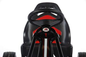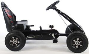 Volare Go Kart Racing Car groot met luchtbanden. Deze Volare Go Kart is er een voor de echte stoere jongens. De Go Kart is voorzien van extra brede luchtbanden met kunststof velgen. De kettingkast is gesloten. De Go Kart heeft vrijloop en een hand band-brake rem. Verder is hij verstelbaar in lengte.