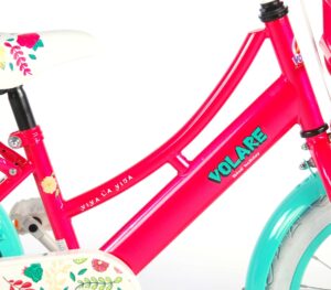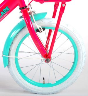 Volare Ibiza 16 inch meisjesfiets. Deze fiets is de ultieme fiets voor de jonge dametjes, nu speciaal voor hen in 16 inch! De fiets is helemaal in de stijl van het prachtige Spaanse eiland Ibiza. De kleuren van de kleurrijke hippiemarkten en het prachtige blauwe zeewater zijn verwerkt in de kleurstelling van deze fiets. De fiets is voorzien van een handige voordrager en een fietsbel. De kettingkast is ter bescherming van de kleine vingertjes volledig gesloten. De fiets heeft zowel een hand- als een terugtraprem. De fiets heeft afneembare zijwieltjes om snel te kunnen leren fietsen. Rijd de zonsondergang tegemoet op deze prachtige Volare Ibiza fiets! Deze fiets is speciaal voor meisjes tussen de 4 en 6 jaar met kledingmaat 104-110.