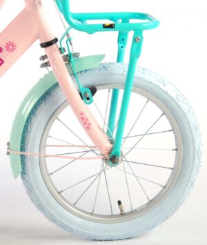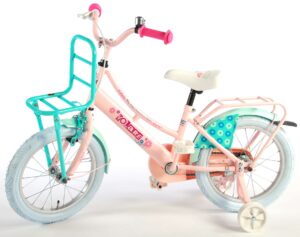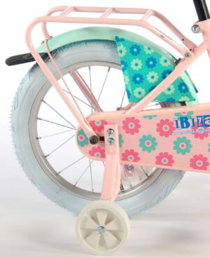 Volare Ibiza 16 inch meisjesfiets. Deze fiets is de ultieme fiets voor de jonge dametjes! De fiets is helemaal in de stijl van het prachtige Spaanse eiland Ibiza. De kleuren van de kleurrijke hippiemarkten en het prachtige blauwe zeewater zijn verwerkt in de kleurstelling van deze fiets. De fiets is voorzien van een handige voordrager en een fietsbel. De kettingkast is ter bescherming van de kleine vingertjes volledig gesloten. De fiets heeft, om snel te kunnen leren fietsen, zijwielen. De fiets heeft zowel een hand- als een terugtraprem. Rijd de zonsondergang tegemoet op deze prachtige Volare Ibiza fiets! Deze fiets is speciaal voor meisjes tussen de 4 en 6 jaar met kledingmaat 104-116.