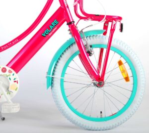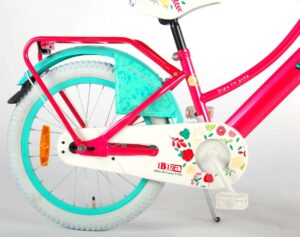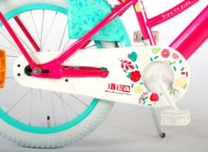 Volare Ibiza 18 inch meisjesfiets. Deze fiets is de ultieme fiets voor de jonge dametjes! De fiets is helemaal in de stijl van het prachtige Spaanse eiland Ibiza. De kleuren van de kleurrijke hippiemarkten en het prachtige blauwe zeewater zijn verwerkt in de kleurstelling van deze fiets. De fiets is voorzien van een handige voordrager en een fietsbel. De kettingkast is ter bescherming van de kleine vingertjes volledig gesloten. De fiets heeft zowel een hand- als een terugtraprem. Rijd de zonsondergang tegemoet op deze prachtige Volare Ibiza fiets! Deze fiets is speciaal voor meisjes tussen de 4 en 7 jaar met kledingmaat 104-116.
