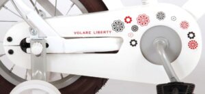 Volare Liberty 12 inch kinderfiets. Deze prachtige Volare Liberty kinderfiets is geliefd onder alle jonge meiden. De achterdrager van de fiets is geïntegreerd in het frame, waardoor de fiets een strak en modern uiterlijk heeft. Het zadel en stuur zijn beide in hoogte verstelbaar, dit zorgt ervoor dat de fiets met uw kindje mee kan groeien. Met de handrem en terugtraprem kan vaart worden geminderd. De fiets beschikt over zowel een voordrager als achterdrager, zodat ieder meisje haar spulletjes gemakkelijk mee kan nemen. Het zachte zadel en de handvaten zorgen voor extra comfort en ter bescherming van de kleine vingertjes is de kettingkast gesloten. Bovendien heeft de fiets een fietsbel om aan iedereen te kunnen laten weten dat je de hoek om komt. Met de afneembare zijwieltjes kan ieder kind snel leren fietsen. . Zoefff, daar gaat je kindje, naar zijn vriendjes en vriendinnetjes!