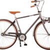 Volare Lifestyle Herenfiets 51 centimeter. Deze fiets, onderdeel van de prachtige Volare Lifestyle range, past perfect in de lifestyle van de moderne man. Het moderne stalen frame van deze fiets heeft een stoere grijze kleur. Om vaart te maken heeft de fiets Shimano Nexus 3 versnellingen en om tot stilstand te komen heeft de fiets een handrem en terugtraprem. De stoere hockey type kettingkast, praktische voorbagagedrager en tweekleurige banden met aluminium velgen zorgen voor een robuste uitstraling. Voor de veiligheid heeft de fiets verlichting aan de voorkant en aan de achterkant, een fietsslot en een fietsbel. De spatborden houden al het opspattende vuil tegen. De 28 inch luchtbanden en het frame van 51 centimeter hoog maken de fiets geschikt voor heren vanaf 12 jaar oud met een binnenbeenlengte tussen de 81,5 en 99 centimeter. De voordrager is afneembaar.