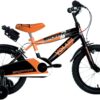 Volare Lovely 16 inch kinderfiets. De Volare Lovely 16 inch kinderfiets is dé fiets waar ieder meisje van droomt. De vlinders en bloemen op het frame, zadel en op de poppenzit maken het design van de rode fiets helemaal af. Om vaart te kunnen minderen heeft de fiets twee handremmen (GEEN TERUGTRAPREM). Ter bescherming van de kleine vingertjes heeft de fiets een gesloten kettingkast. Met de fietsbel kun je laten weten dat je de hoek om komt. Om spulletjes mee te kunnen nemen heeft de fiets een prachtig kunststof mandje en speciaal voor de poppen heeft de fiets een roze poppenzitje achter. Met de afneembare zijwieltjes kan ieder kind snel leren fietsen. De 16 inch luchtbanden maken de fiets geschikt voor kinderen tussen de 4 en 6 jaar oud met kledingmaat 104-110.