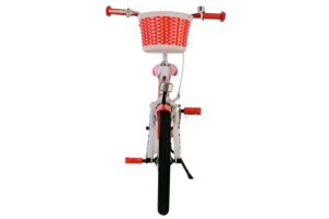 De Volare Lovely 18 inch kinderfiets is dé fiets waar ieder meisje van droomt. De vlinders en bloemen op het frame en zadel maken het design van de rode fiets helemaal af. Om vaart te kunnen minderen heeft de fiets zowel een handrem als een terugtraprem. Ter bescherming van de kleine vingertjes heeft de fiets een gesloten kettingkast. Met de fietsbel kun je laten weten dat je de hoek om komt. Om spulletjes mee te kunnen nemen heeft de fiets een prachtig kunststof mandje.