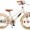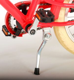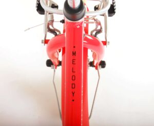 Volare Melody 16 inch kinderfiets. De prachtige Volare Melody fietsenreeks is van superieure kwaliteit. Het frame van deze fiets is gemaakt van ultra licht aluminium, slechts 12 kilo! Deze fiets met dit moderne frame, de stoere pistol type kettingkast en praktische voordrager is een must have voor iedere hippe meid. Om vaart te kunnen minderen heeft de fiets een veilig Aluminium V-brake systeem met een handrem en terugtraprem. Om de fiets makkelijk neer te kunnen zetten heeft hij een sterk standaard. De handvaten zijn van Kraton, een heerlijk zacht rubber, waardoor deze lekkerder in de hand liggen en extra comfort bieden. De zadelbuis is extra laag met een extra lange zadelpen, waardoor de fiets met uw kind mee kan groeien. Bovendien is het stuur in hoogte verstelbaar en heeft de fiets voor- en achterreflectoren.. De fiets is voor 85% afgemonteerd. De 16 inch luchtbanden maken dat deze fiets geschikt is voor meiden tussen de 4 en 6 jaar oud met kledingmaat 104-110. Op deze hippe Volare Melody kinderfiets wil iedere meid naar school fietsen!