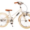 Volare Melody 18 inch kinderfiets. De prachtige Volare Melody fietsenreeks is van superieure kwaliteit. Het frame van deze fiets is gemaakt van ultra licht aluminium, slechts 12 kilo! Deze fiets met dit moderne frame, de stoere pistol type kettingkast en praktische voordrager is een must have voor iedere hippe meid. Om vaart te kunnen minderen heeft de fiets een veilig Aluminium V-brake systeem met handrem en terugtraprem. Om de fiets makkelijk neer te kunnen zetten heef hij een sterk standaard. De handvaten zijn van Kraton, een heerlijk zacht rubber, waardoor deze lekkerder in de hand liggen en extra comfort bieden. De zadelbuis is extra laag met een extra lange zadelpen, waardoor de fiets met uw kind mee kan groeien. Bovendien is het stuur in hoogte verstelbaar en heeft de fiets voor- en achterreflectoren. De fiets is voor 85% afgemonteerd. De 18 inch luchtbanden maken dat deze fiets geschikt is voor meiden tussen de 4 en 7 jaar oud met kledingmaat 104-116. Op deze hippe Volare Melody kinderfiets wil iedere meid naar school fietsen!