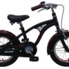Volare Miracle Cruiser 16 inch kinderfiets. De prachtige Volare Miracle Cruiser fietsenreeks is van superieure kwaliteit. Het frame van deze fiets is gemaakt van aluminium, ultra licht dus! Deze fiets met dit moderne frame en de stoere pistol type kettingkast is een must have voor iedere stoere jongen. Om vaart te kunnen minderen heeft de fiets een handrem en terugtraprem. De handvaten van leer bieden extra comfort. Om de fiets makkelijk neer te kunnen zetten heeft hij een sterk standaard. De zadelbuis is extra laag met een extra lange zadelpen, waardoor de fiets met uw kind mee kan groeien. Het stuur is in hoogte verstelbaar, ook heeft de fiets een voorreflector. De fiets is voor 85% afgemonteerd. De 16 inch luchtbanden maken dat deze fiets geschikt is voor jongens tussen de 6 en 8 jaar oud met kledingmaat 116-122. Op deze hippe Volare Miracle Cruiser kinderfiets wil iedere jongen naar school fietsen!
