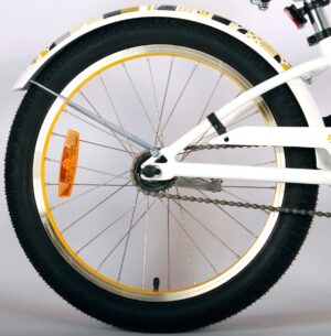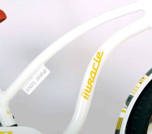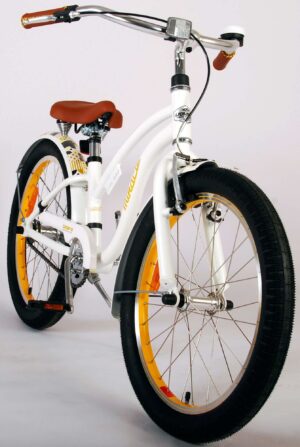 Volare Miracle Cruiser 20 inch kinderfiets. De prachtige Volare Miracle Cruiser fietsenreeks is van superieure kwaliteit. Het frame van deze fiets is gemaakt van aluminium, ultra licht dus! Deze fiets met dit moderne frame is een must have voor iedere stoere meid. Om vaart te kunnen minderen heeft de fiets een handrem en terugtraprem. De handvaten van leer bieden extra comfort. Om de fiets makkelijk neer te kunnen zetten heeft hij een sterk standaard. De zadelbuis is extra laag met een extra lange zadelpen, waardoor de fiets met uw kind mee kan groeien. Het stuur is in hoogte verstelbaar. Op deze hippe Volare Miracle Cruiser kinderfiets wil iedere hippe meid naar school fietsen!