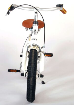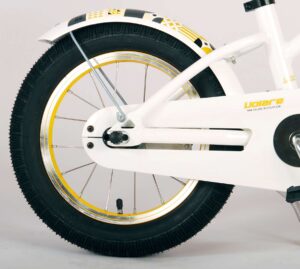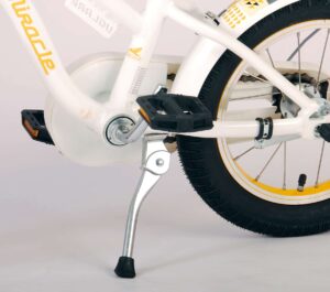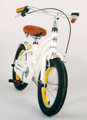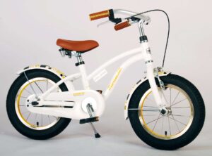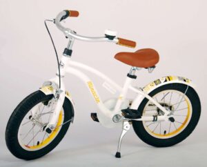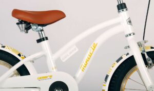 Volare Miracle Cruiser 14 inch kinderfiets. De prachtige Volare Miracle Cruiser fietsenreeks is van superieure kwaliteit. Het frame van deze fiets is gemaakt van aluminium, ultra licht dus! Deze fiets met dit moderne frame is een must have voor iedere stoere meid. Om vaart te kunnen minderen heeft de fiets een handrem en terugtraprem. De handvaten van leer bieden extra comfort. Om de fiets makkelijk neer te kunnen zetten heeft hij een sterk standaard. De zadelbuis is extra laag met een extra lange zadelpen, waardoor de fiets met uw kind mee kan groeien. Het stuur is in hoogte verstelbaar. De 14 inch luchtbanden maakt de Volare Miracle kinderfiets geschikt voor kinderen tussen de 3,5 en 5 jaar oud, met kledingmaat 98-110. Deze fiets is dé fiets om kinderen te inspireren om de wereld te gaan ontdekken!