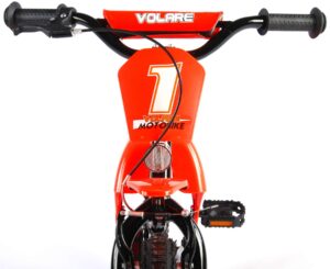 Volare Motorbike jongensfiets 16 inch. Deze jongensfiets is de droom van iedere jongen! Crossen door de straten kan op deze superstoere motorbike. Aan elk detail is namelijk gedacht: van brede banden tot grote kunststof spatborden en van een echt racezadel tot zijwielen om snel te kunnen leren fietsen. Verder heeft de fiets een gesloten kettingskast, om de kleine vingertjes te beschermen. De zijwielen zijn afneembaar. De fiets heeft zowel een hand- als een terugtraprem. De coole motorbike is geschikt voor jongens in de leeftijd van 4 tot 6 jaar en met kledingmaat 104-110.