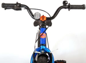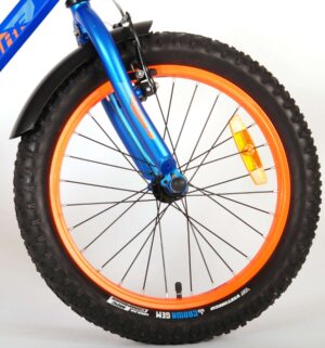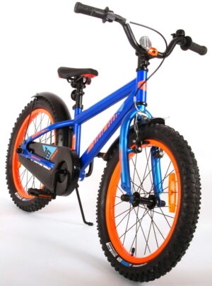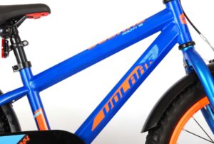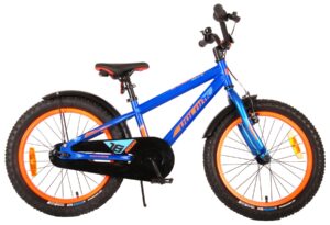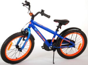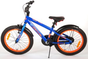 De Volare Rocky kinderfietsrange is van superieure kwaliteit. De Rocky fiets heeft aluminium velgen, een aluminium stuurpen, betere kwaliteit trappers, zwarte spaken en een luxe super zacht zadel met greep voor ouders. De 18 inch Rocky is een stoere jongensfiets met extra brede banden, waar ieder kinderhart sneller van gaat kloppen. Ook de spatborden zijn extra groot en mooi gevormd waardoor zij al het opspattende vuil tegenhouden. Om vaart te kunnen minderen heeft de fiets een veilig remsysteem met een stevige V-brake. De zadelbuis is extra laag met een extra lange zadelpen, waardoor de fiets met uw kindje mee kan groeien. Daarnaast heeft de fiets een aluminium smart control systeem, dat ervoor zorgt dat het stuur begrensd is (niet in hoogte verstelbaar). De handvatten zijn gemaakt van Kraton, een zacht rubber, waardoor de handvatten heerlijk in de hand liggen. De fiets heeft een gesloten kettingkast, stevige standaard (geen zijwielen!!) en een fietsbel. Het geometrische frame in de felblauwe kleur met watertransfer stickers maakt van deze fiets een echte eyecatcher.
