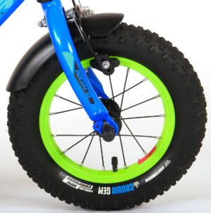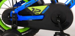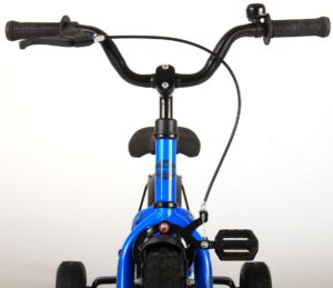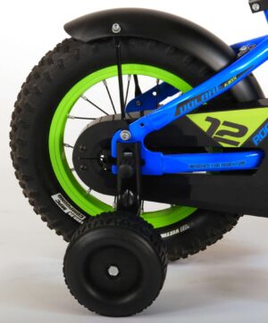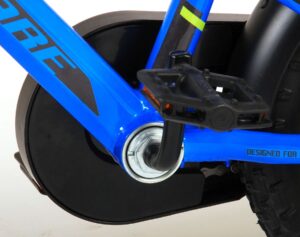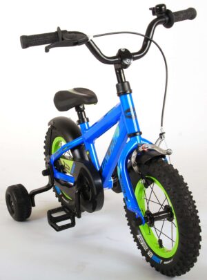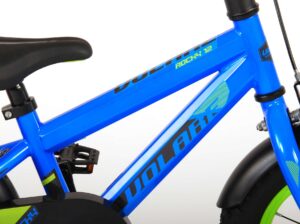 Volare Rocky 12 inch kinderfiets 95% afgemonteerd. De Volare Rocky kinderfietsrange is echt van superieure kwaliteit. De Rocky fiets heeft aluminium velgen, een aluminium stuurpen, betere kwaliteit trappers, zwarte spaken en een luxe super zacht zadel met greep voor ouders. De 12 inch Rocky is een stoere jongensfiets met extra brede banden, waar ieder kinderhart sneller van gaat kloppen. Ook de spatborden zijn extra groot en mooi gevormd waardoor zij al het opspattende vuil tegenhouden. Het stuur is in hoogte verstelbaar en de zadelbuis is extra laag met een extra lange zadelpen, waardoor de fiets met uw kindje mee kan groeien. De handvatten zijn gemaakt van Kraton, een zacht rubber, waardoor de handvatten heerlijk in de hand liggen. Het geometrische frame in de blauwe kleur met watertransfer stickers maakt van deze fiets een echte eyecatcher. De fiets heeft extra brede stoer uitziende zijwieltjes om snel te kunnen leren fietsen en een gesloten kettingkast om de kleine vingertjes te beschermen. Deze fiets is dé fiets om kinderen te inspireren om de wereld te gaan ontdekken. Bovendien is de fiets voor 95% afgemonteerd, dus bijna fietsklaar. Wel zo gemakkelijk!