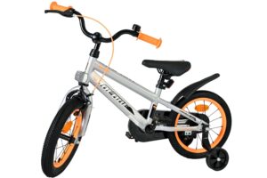 Veiligheid staat voorop! Daarom heeft deze gave fiets een handrem en terugtraprem, een gesloten kettingkast en afneembare zijwieltjes. Daarnaast heeft de fiets een leuke bel. Ook aan het comfort is gedacht. De mooie grijze Volare fiets met zwarte accenten heeft een luxe zacht zadel, een strak frame dat wel tegen een stootje kan, en extra lange spatborden om al het vuil tegen te houden. Om zo lang mogelijk van de fiets te kunnen genieten heeft de fiets een extra lange zadelpen waardoor de fiets nóg langer meegroeit. Wordt geleverd inclusief al het montagemateriaal dat nodig is om de fiets in elkaar te zetten!