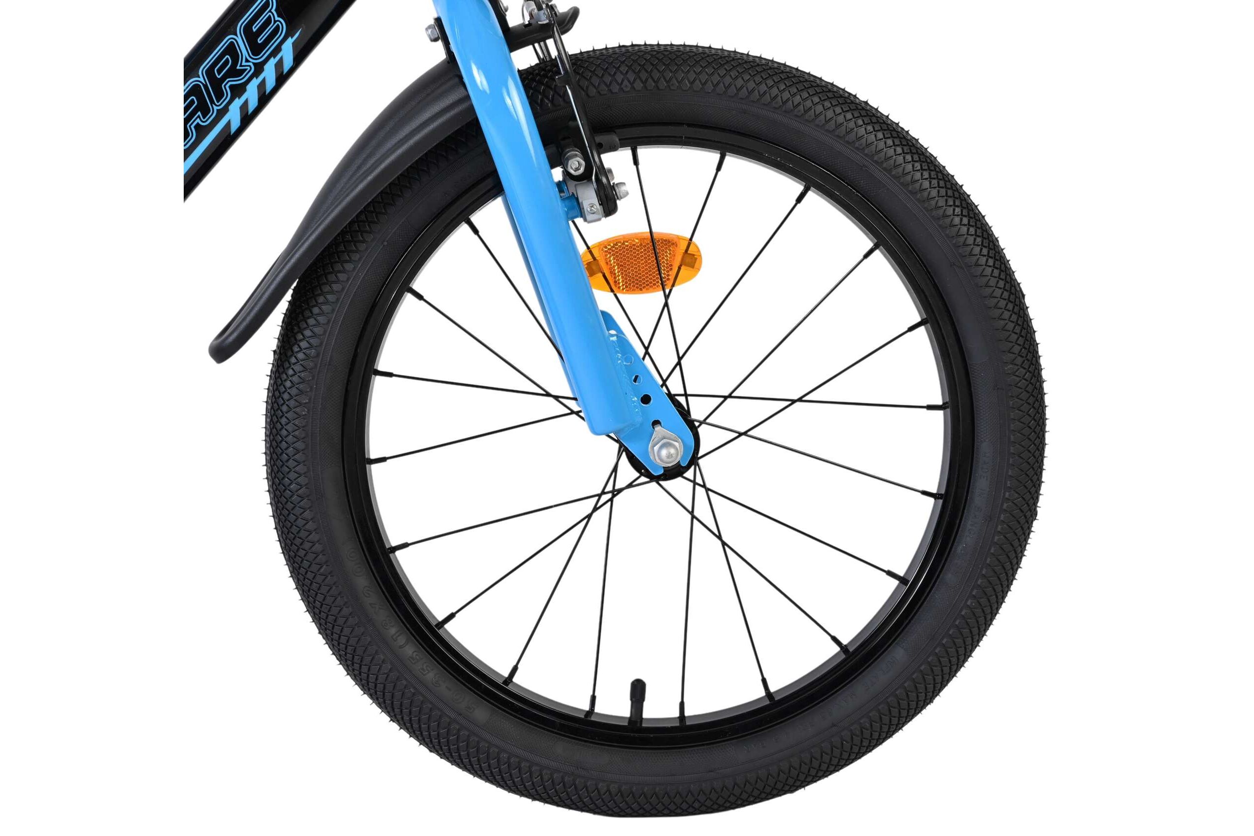 Veiligheid staat voorop! Het sterke stalen frame heeft met de stoere blauw/zwarte kleurstelling een zeer sportieve uitstraling. Met de bidon in de praktische bidonhouder heeft uw kind altijd iets te drinken bij zich. De spatborden houden al het opspattend vuil tegen. Om vaart te minderen heeft de fiets zowel een hand- als terugtraprem. Ter bescherming van de kleine vingertjes is de kettingkast gesloten. De fiets heeft zijwielen en een stevige standaard.