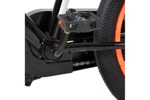 De fiets is uitgerust met een terugtraprem en een handrem, zodat er altijd veilig en gecontroleerd geremd kan worden. De gesloten kettingkast beschermt kleine vingertjes en houdt de ketting schoon. Dankzij de reflectoren in de wielen, voor en achter, is je kind goed zichtbaar onderweg.