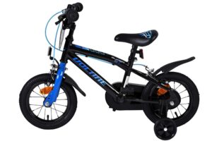 Veiligheid staat voorop! Daarom heeft deze gave fiets geen terugtraprem maar twee handremmen, een gesloten kettingkast en afneembare zijwieltjes. Daarnaast heeft de fiets reflectoren in de wielen, voor- en achterop de fiets en een leuke bel. Ook aan het comfort is gedacht. De mooie zwarte Volare fiets met blauwe accenten heeft een zacht zadel, een tijdloos design, en een uniek frame dat wel tegen een stootje kan. Om zo lang mogelijk van de fiets te kunnen genieten zijn het zadel en stuur in hoogte verstelbaar. Wordt geleverd inclusief al het montagemateriaal dat nodig is om de fiets in elkaar te zetten!
