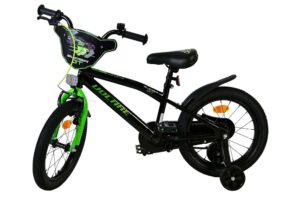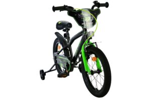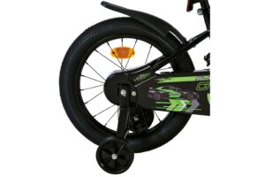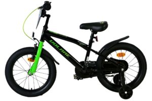 Veiligheid staat voorop! Daarom heeft deze gave fiets een handrem en terugtraprem, een gesloten kettingkast en afneembare zijwieltjes. Daarnaast heeft de fiets reflectoren in de wielen, voor- en achterop de fiets en een leuke bel. Ook aan het comfort is gedacht. De mooie zwarte Volare fiets met groene accenten heeft een zacht zadel, een tijdloos design, en een uniek frame dat wel tegen een stootje kan. Om zo lang mogelijk van de fiets te kunnen genieten zijn het zadel en stuur in hoogte verstelbaar. Wordt geleverd inclusief al het montagemateriaal dat nodig is om de fiets in elkaar te zetten!