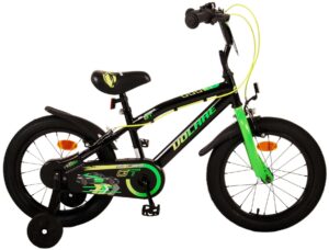 Veiligheid staat voorop! Daarom heeft deze gave fiets geen terugtraprem maar twee handremmen, een gesloten kettingkast en afneembare zijwieltjes. Daarnaast heeft de fiets reflectoren in de wielen, voor- en achterop de fiets en een leuke bel. Ook aan het comfort is gedacht. De mooie zwarte Volare fiets met groene accenten heeft een zacht zadel, een tijdloos design, en een uniek frame dat wel tegen een stootje kan. Om zo lang mogelijk van de fiets te kunnen genieten zijn het zadel en stuur in hoogte verstelbaar. Wordt geleverd inclusief al het montagemateriaal dat nodig is om de fiets in elkaar te zetten!