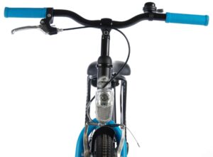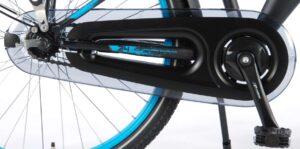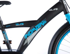 Volare Thombike City 24 inch jongensfiets Satin Black Blue. Speciaal voor alle jonge avonturiers heeft Volare een nieuwe Thombike City collectie ontworpen. De fiets heeft een super stoer frame in een zwarte kleur met blauwe details en stevige banden om de hele stad mee door te kunnen crossen. Verder beschikt de fiets over een handrem en een terugtraprem, een fietsbel, voor- en achterverlichting, een stevig aluminium standaard, aluminium velgen en een fietsslot. Ook heeft de fiets een sterke achterdrager met snelbinders en een fietsslot. Op deze coole fiets maakt iedere stoere bink de blits!