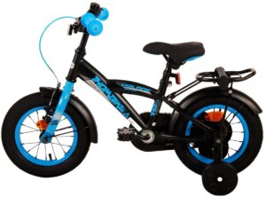 Veiligheid staat voorop! Daarom heeft deze gave fiets een handrem en terugtraprem, een gesloten kettingkast en afneembare zijwieltjes. Daarnaast heeft de fiets een leuke bel. Ook aan het comfort is gedacht. De mooie zwarte Volare fiets met blauwe accenten heeft een luxe zacht zadel, een handige achterdrager, en extra lange spatborden om al het vuil tegen te houden. Om zo lang mogelijk van de fiets te kunnen genieten zijn het zadel en stuur in hoogte verstelbaar. Wordt geleverd inclusief al het montagemateriaal dat nodig is om de fiets in elkaar te zetten!