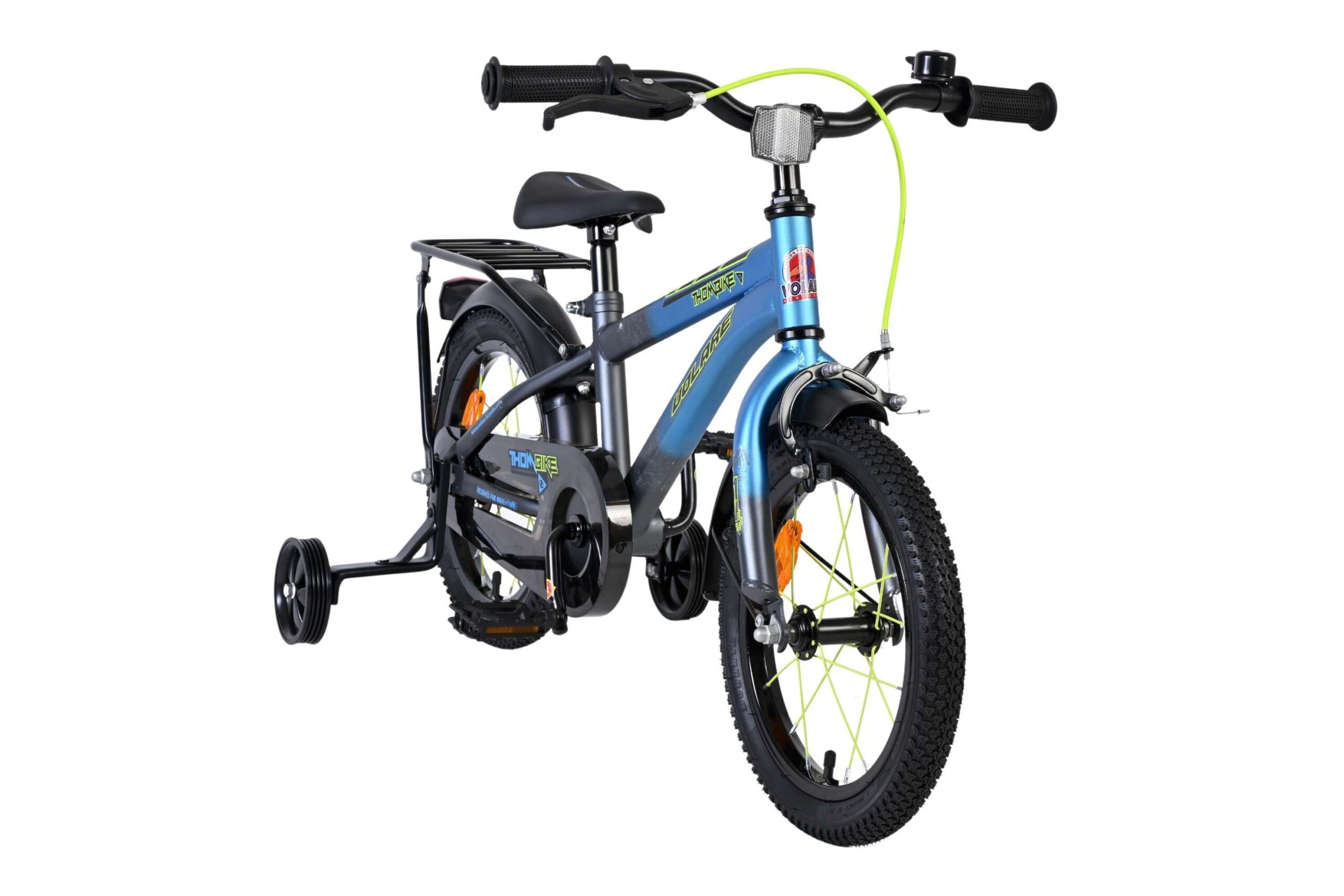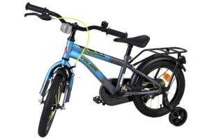 De Volare Thombike 14 inch in blauw met grijze accenten is een stoere kinderfiets met een sportieve uitstraling, perfect om veilig en met vertrouwen te leren fietsen. Dankzij de stevige afwerking en het frisse design is dit een echte favoriet voor jonge rijders.