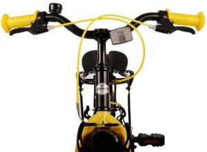 Veiligheid staat voorop! Daarom heeft deze gave fiets geen terugtraprem maar twee handremmen, een gesloten kettingkast en afneembare zijwieltjes. Daarnaast heeft de fiets een leuke bel. Ook aan het comfort is gedacht. De mooie zwarte Volare fiets met gele accenten heeft een luxe zacht zadel, een handige achterdrager, en extra lange spatborden om al het vuil tegen te houden. Om zo lang mogelijk van de fiets te kunnen genieten zijn het zadel en stuur in hoogte verstelbaar. Wordt geleverd inclusief al het montagemateriaal dat nodig is om de fiets in elkaar te zetten!