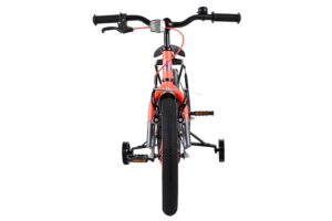De Volare Thombike 16 inch kinderfiets in oranje met grijze details is perfect voor jonge fietsers die houden van een stoere en moderne uitstraling. Deze degelijke kinderfiets is voorzien van een dichte kettingkast, waardoor de bewegende onderdelen veilig zijn afgeschermd en de fiets minder onderhoud vraagt. Met de afneembare zijwielen kan ieder kind stap voor stap leren fietsen en later moeiteloos overstappen naar zelfstandig fietsen.