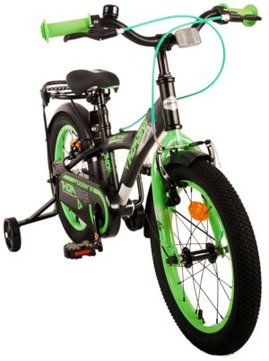 Veiligheid staat voorop! Daarom heeft deze gave fiets geen terugtraprem maar twee handremmen, een gesloten kettingkast en afneembare zijwieltjes. Daarnaast heeft de fiets een leuke bel. Ook aan het comfort is gedacht. De mooie zwarte Volare fiets met groene accenten heeft een luxe zacht zadel, een handige achterdrager, en extra lange spatborden om al het vuil tegen te houden. Om zo lang mogelijk van de fiets te kunnen genieten zijn het zadel en stuur in hoogte verstelbaar. Wordt geleverd inclusief al het montagemateriaal dat nodig is om de fiets in elkaar te zetten!