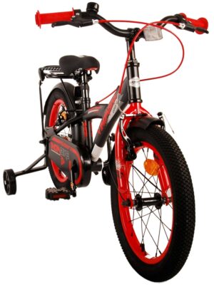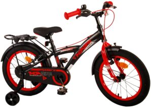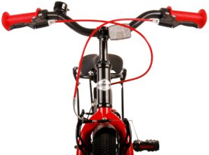 Veiligheid staat voorop! Daarom heeft deze gave fiets geen terugtraprem maar twee handremmen, een gesloten kettingkast en afneembare zijwieltjes. Daarnaast heeft de fiets een leuke bel. Ook aan het comfort is gedacht. De mooie zwarte Volare fiets met rode accenten heeft een luxe zacht zadel, een handige achterdrager, en extra lange spatborden om al het vuil tegen te houden. Om zo lang mogelijk van de fiets te kunnen genieten zijn het zadel en stuur in hoogte verstelbaar. Wordt geleverd inclusief al het montagemateriaal dat nodig is om de fiets in elkaar te zetten!