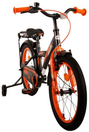 Veiligheid staat voorop! Daarom heeft deze gave fiets een handrem en terugtraprem, een gesloten kettingkast en afneembare zijwieltjes. Daarnaast heeft de fiets een leuke bel. Ook aan het comfort is gedacht. De mooie zwarte Volare fiets met oranje accenten heeft een luxe zacht zadel, een handige achterdrager met snelbinders, en een tijdloos en stevig frame dat wel tegen een stootje kan. Om zo lang mogelijk van de fiets te kunnen genieten heeft de fiets een extra lange zadelpen waardoor de fiets nóg langer met het kind meegroeit en ook het stuur is in hoogte verstelbaar. Wordt geleverd inclusief al het montagemateriaal dat nodig is om de fiets in elkaar te zetten!