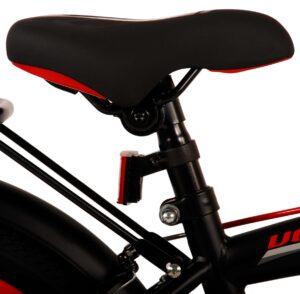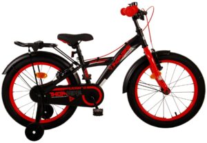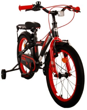 Veiligheid staat voorop! Daarom heeft deze gave fiets geen terugtraprem maar twee handremmen, een gesloten kettingkast en afneembare zijwieltjes. Daarnaast heeft de fiets een leuke bel. Ook aan het comfort is gedacht. De mooie zwarte Volare fiets met rode accenten heeft een luxe zacht zadel, een handige achterdrager met snelbinders, en een tijdloos en stevig frame dat wel tegen een stootje kan. Om zo lang mogelijk van de fiets te kunnen genieten heeft de fiets een extra lange zadelpen waardoor de fiets nóg langer met het kind meegroeit en ook het stuur is in hoogte verstelbaar. Wordt geleverd inclusief al het montagemateriaal dat nodig is om de fiets in elkaar te zetten!