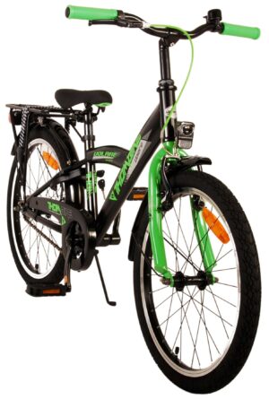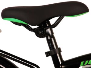 Veiligheid staat voorop! Daarom heeft deze gave fiets een handrem en terugtraprem en verlichting op batterij voor en achter. Daarnaast heeft de fiets een leuke bel en reflectoren in de wielen. Ook aan het comfort is gedacht. De mooie zwarte Volare fiets met groene accenten heeft een luxe zacht zadel en extra zachte handvaten, een handige achterdrager, en een stevig frame dat wel tegen een stootje kan. Verder heeft de fiets een standaard zodat hij netjes blijft staan en een sterk slot. Om zo lang mogelijk van de fiets te kunnen genieten heeft deze een extra lange zadelpen waardoor de fiets nóg langer met het kind meegroeit en ook het stuur is in hoogte verstelbaar.