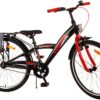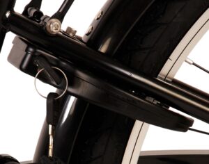 Veiligheid staat voorop! Daarom heeft deze gave fiets een handrem en terugtraprem en verlichting op batterij voor en achter. Daarnaast heeft de fiets een leuke bel en reflectoren in de wielen. Ook aan het comfort is gedacht. De mooie zwarte Volare fiets met rode accenten heeft een luxe zacht zadel en extra zachte handvaten, een handige achterdrager, en een stevig frame dat wel tegen een stootje kan. Verder heeft de fiets een standaard zodat hij netjes blijft staan en een sterk slot. Om zo lang mogelijk van de fiets te kunnen genieten heeft deze een extra lange zadelpen waardoor de fiets nóg langer met het kind meegroeit en ook het stuur is in hoogte verstelbaar.